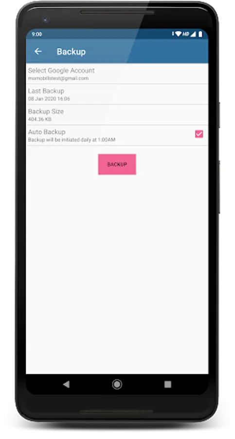 - Automatic backup on google drive.