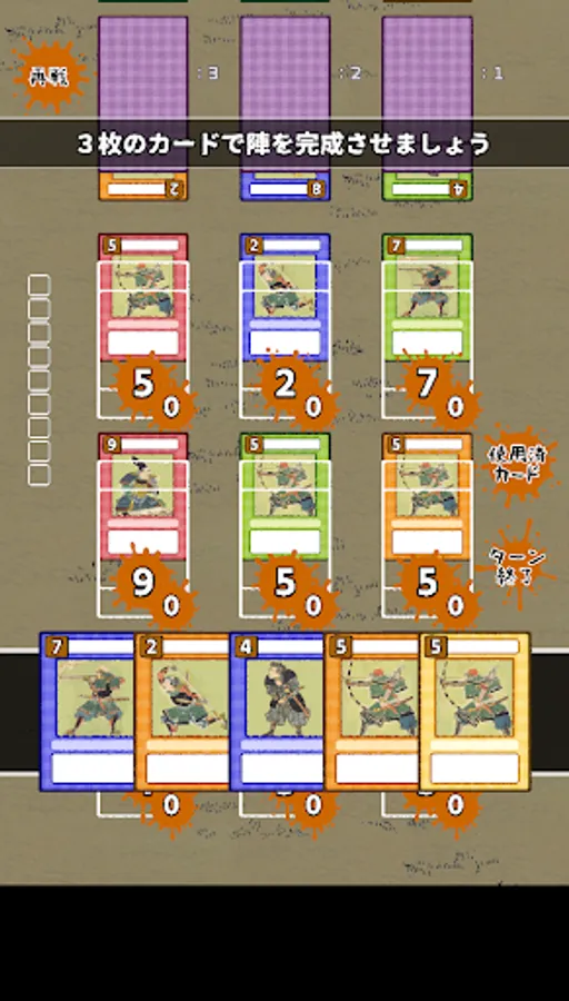 Defeat your opponent by placing cards in nine formations.