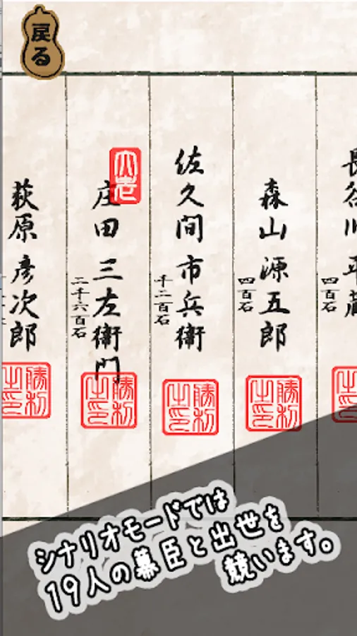 In scenario mode, you will fight 19 ”Edo period” officials.
