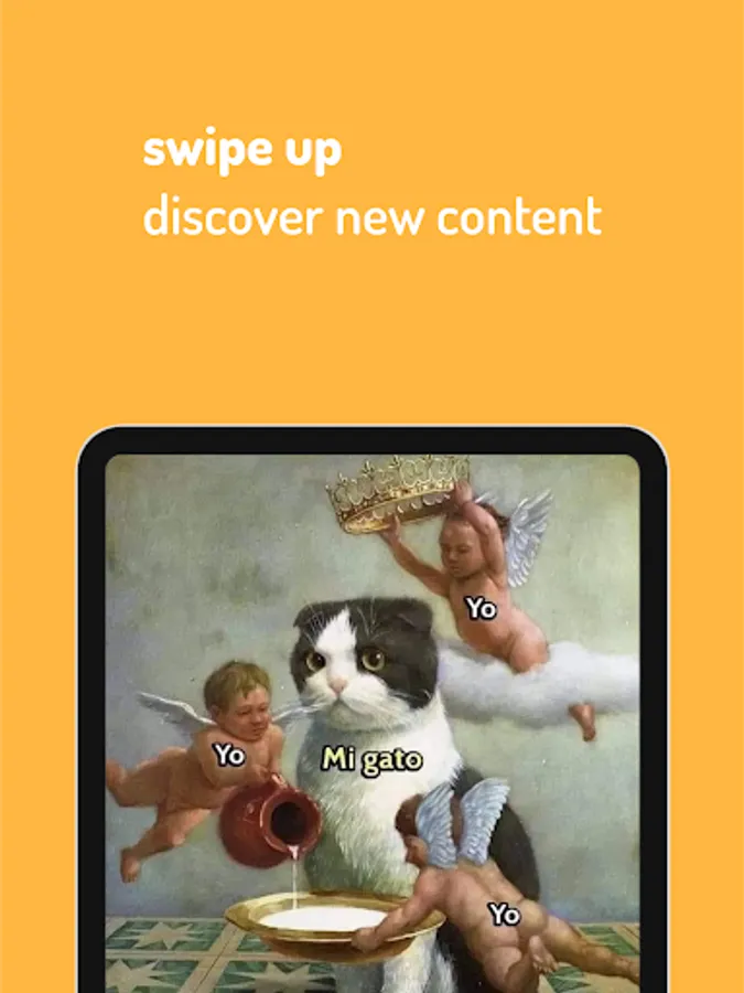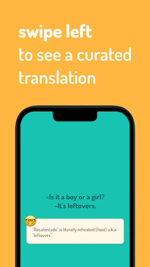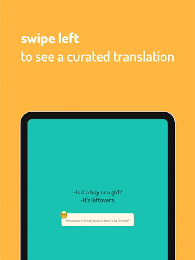 Swipe down to see more memes, and swipe left to translate a meme to English.