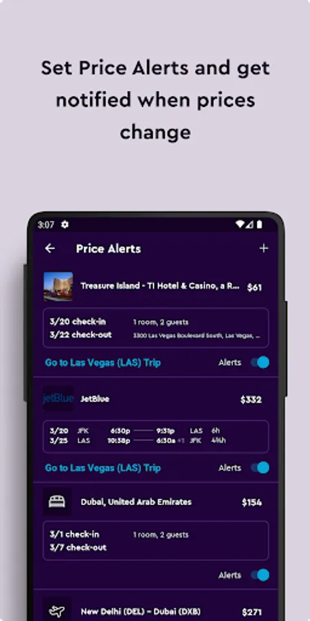 • Save and sync your preferences, your search history and all your favorite flights and hotels