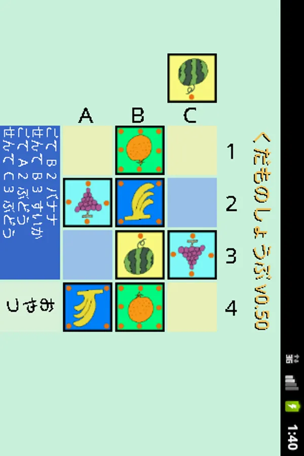 Luaridaスクリプトで作った「どうぶつしょうぎ」と同じルールで遊べる将棋ゲームです。果物の駒を使って対戦します。
