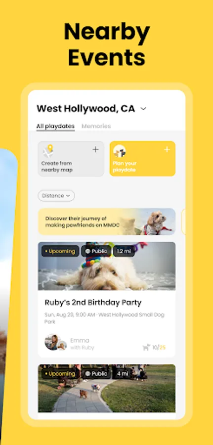 Ready to host a dog meetup or puppy playdate? Use MMDC's advanced map to see nearby dogs and ideal playdate spots. Set a time and place, invite local pet parents, and let the fun begin! After the playdate, share a 'Playdate Memory' to capture the adventure and inspire others. Watch your dog’s social life soar as you build a collection of shared experiences.