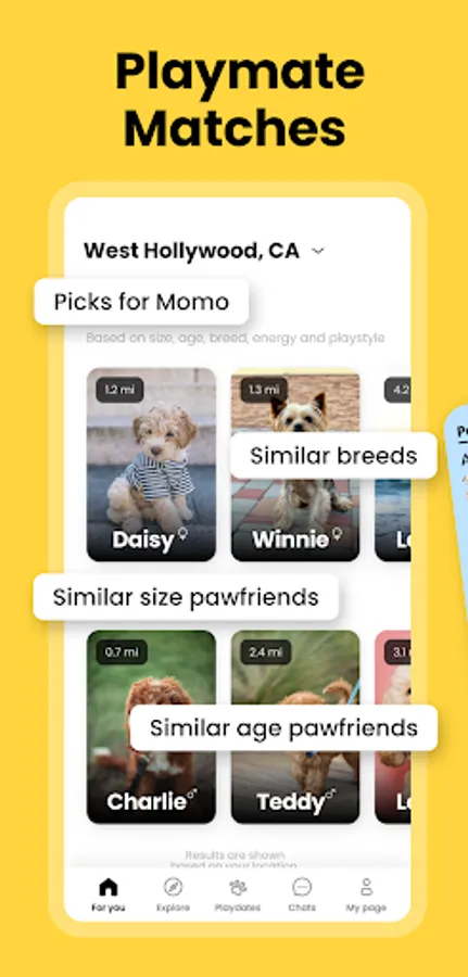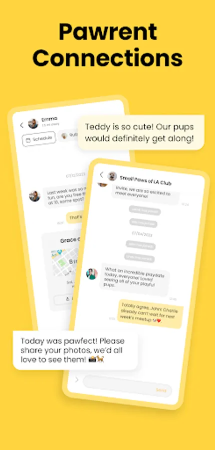 Your pet's new best buddy is only a like away! Search and explore nearby dogs and potential playdate locations directly on a map. Check detailed profiles to choose the perfect dog friend in your neighborhood, and plan 1:1 dog meetups with convenient in-chat reminders. Share your favorite dog-friendly parks, chat with other pawrents, and meet up for memorable experiences.