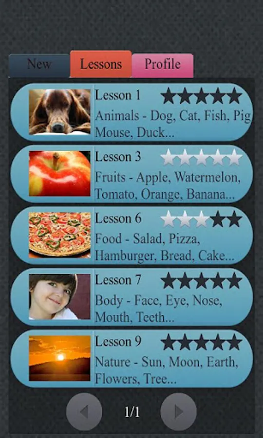- Test mode to test your mastery of the lesson. A summary with rating will be given after the test