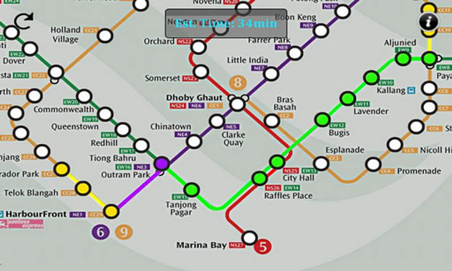 Singapore MRT Best Route is designed to allows user to get the best route within seconds. You could grap out your phone and just click any 2 stations, and the best route will be shown right away.