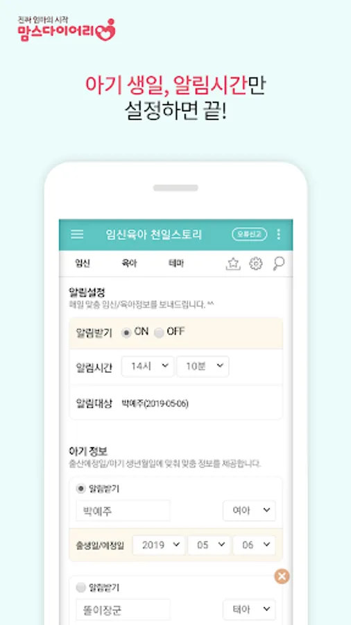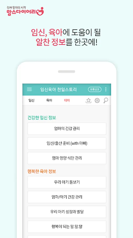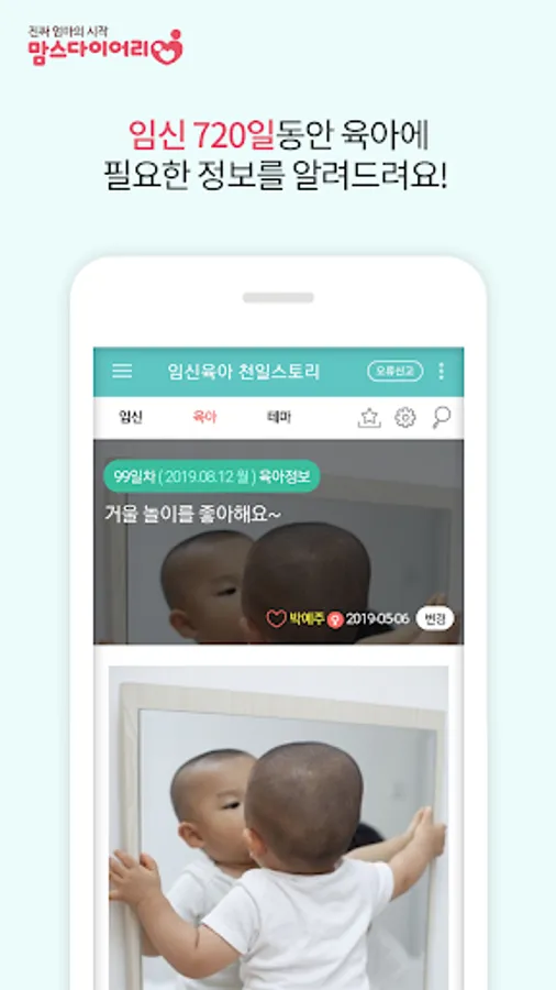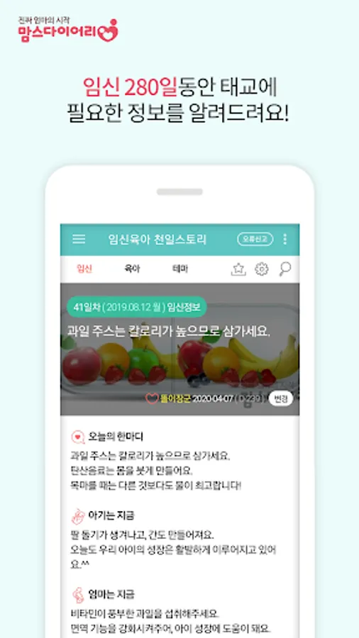 『Mam's Cheonil Story』 is a service that informs pregnancy / child care information for a total of 1,000 days from 280 days of pregnancy to 720 days after giving birth.