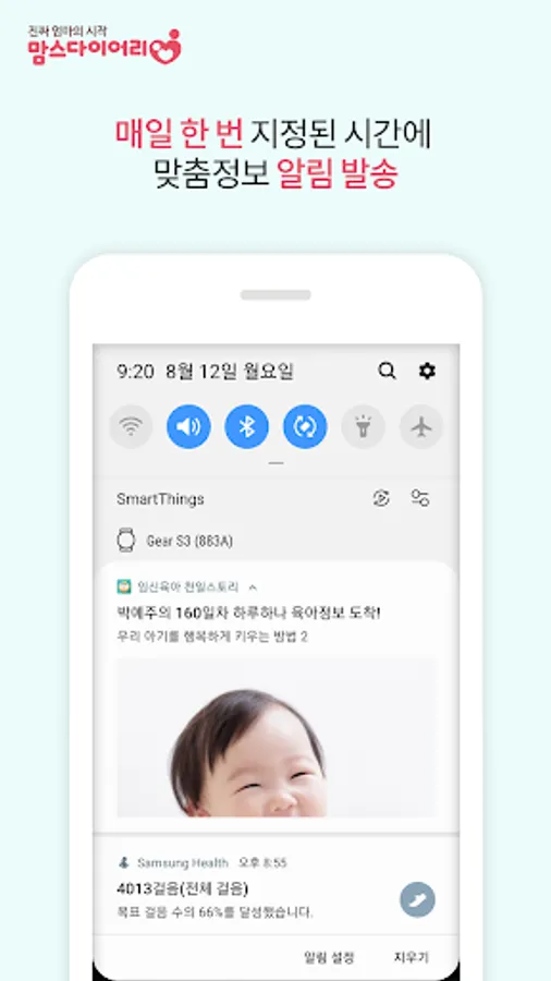 You can receive daily mobile notifications at a designated time to listen to your baby's primary development, precautions, and postpartum recipes.