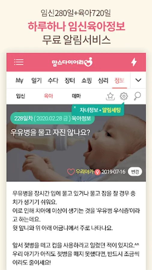 -720 days of childcare information from childbirth to dudol according to the child's age is provided.