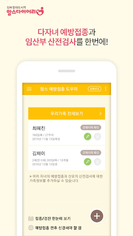 첫째 아이, 둘째 아이, 셋째 임신의 경우에도 한번에 모두 관리하실 수 있습니다.