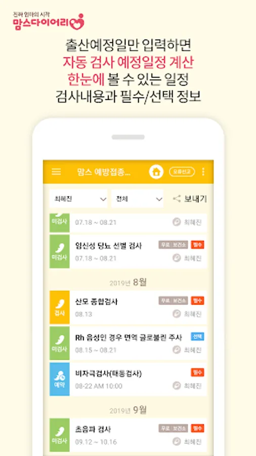◆ 산모의 산전검사 자동 날짜 계산 및 알림, 이력관리 - 산모수첩