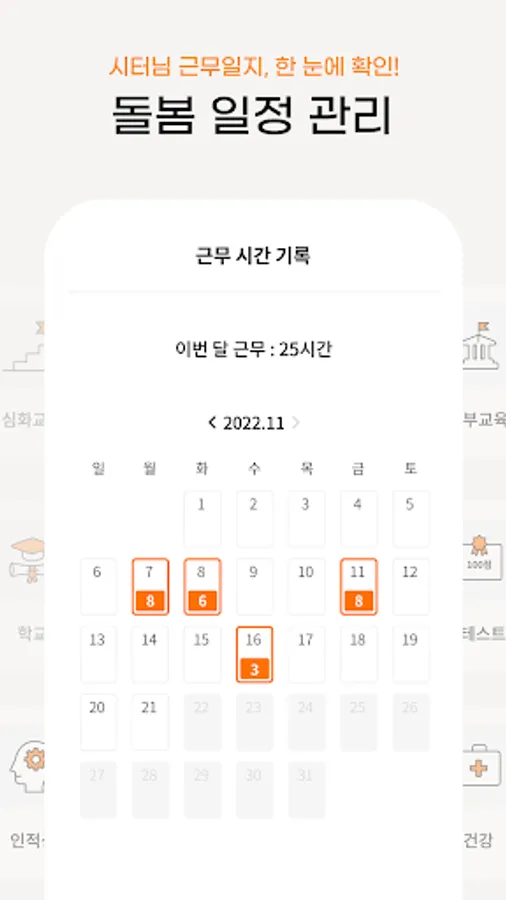 - Care management: Check the sitter's work diary calendar