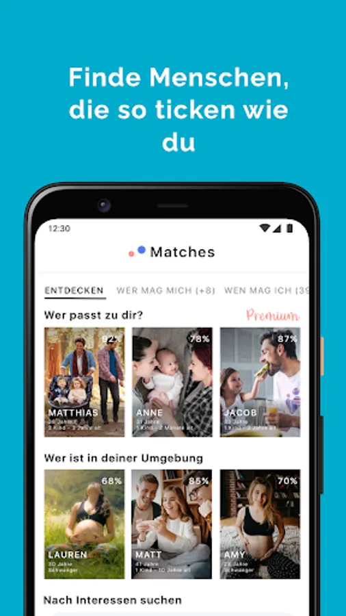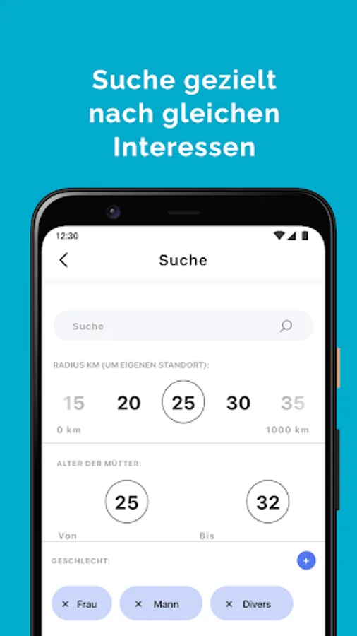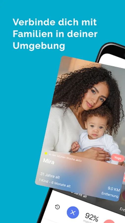 After registering for free, you create your profile and select your search criteria. Perhaps you would like to exchange ideas with a parent close to you who works or whose child is the same age as yours? Or you are looking for someone who speaks the same languages as you - with the various filters you can determine exactly what is important to you and which parenting or pregnancy topics interest you.