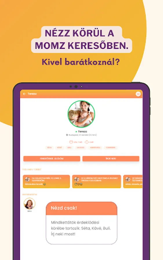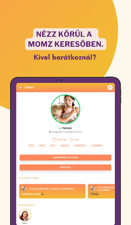 The Momz app allows you to be an active participant in your local community as a mother or expectant mother. We created it to make it easier to get to know nearby mothers and no one should be left without adult company in the daily life of motherhood. We want to motivate you to find mothers and build personal relationships in your area. With Momz app, we strive to make your days more fun and comfortable.