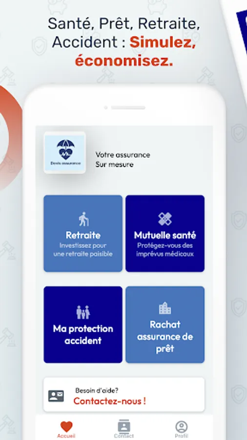 Simulations: Mutual insurance, loan insurance, retirement, accident protection - all these simulations are available at no additional cost. Take control and get your own personalized quote.