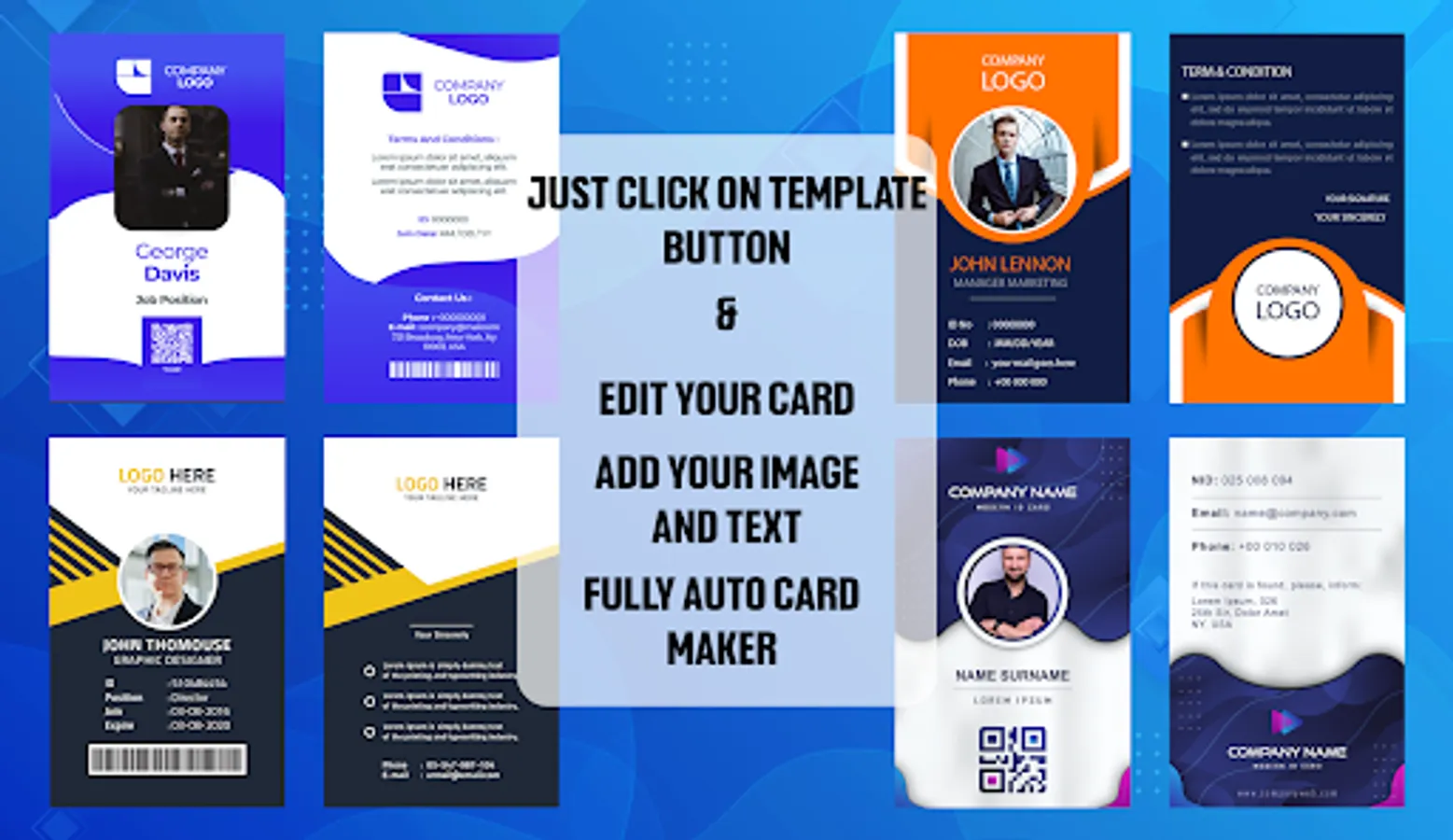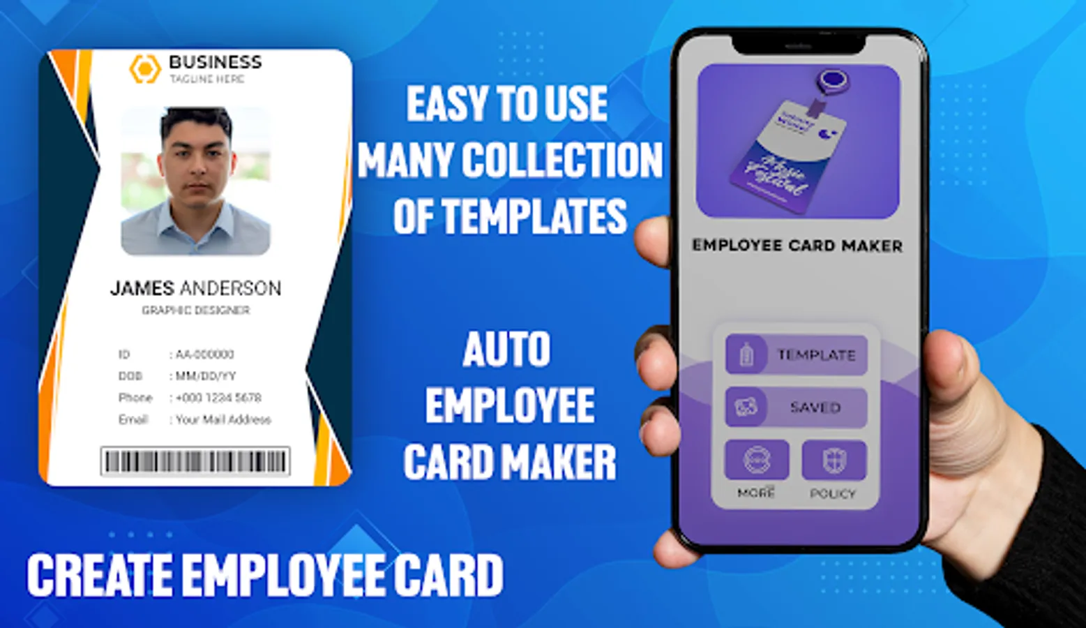Employee card maker is the auto card designer app in which anyone can put their creativity with unique and stunning card designs.