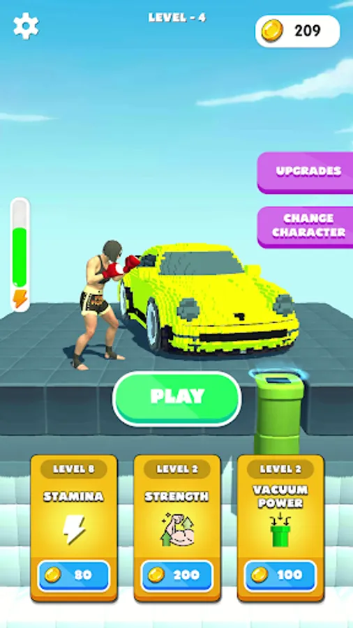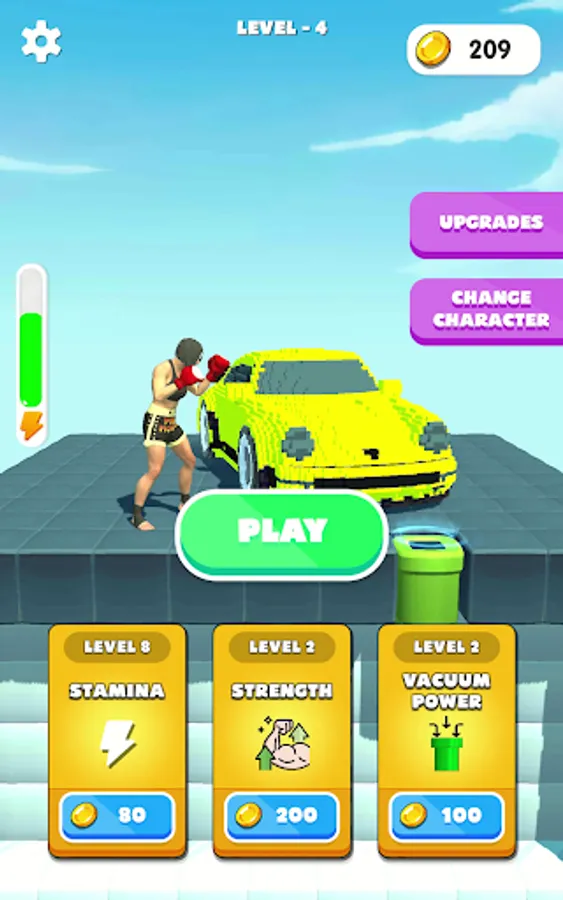 Improve your warrior and become more and more destructive! Hit and crush all cars and buildings!