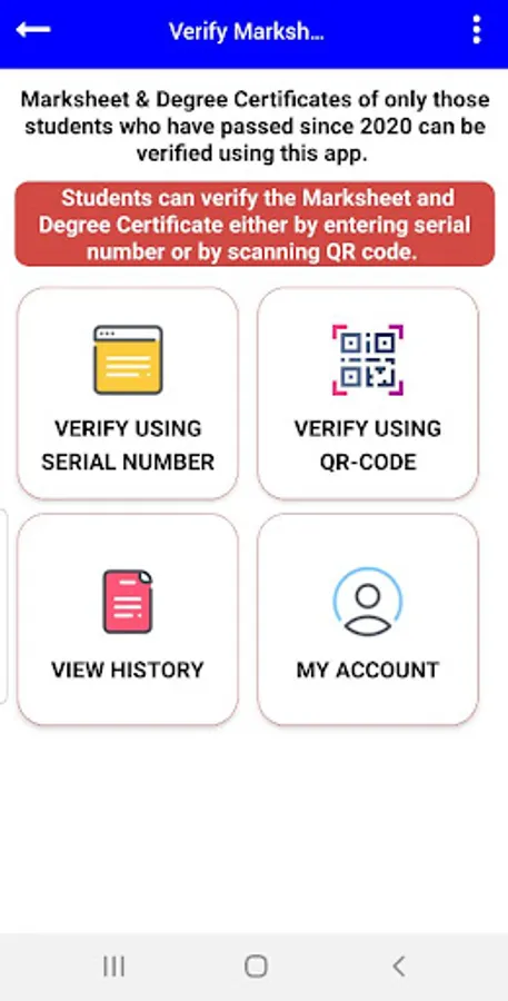 This application, after scan, provides the preview of the certificate and other document data that can be compared with the in-hand document. Thus verifying documents of Monad University is quick, free and easy via this application