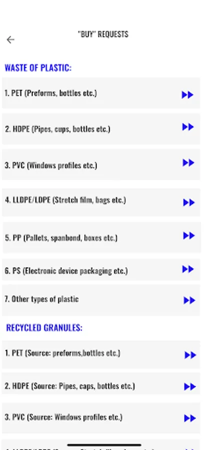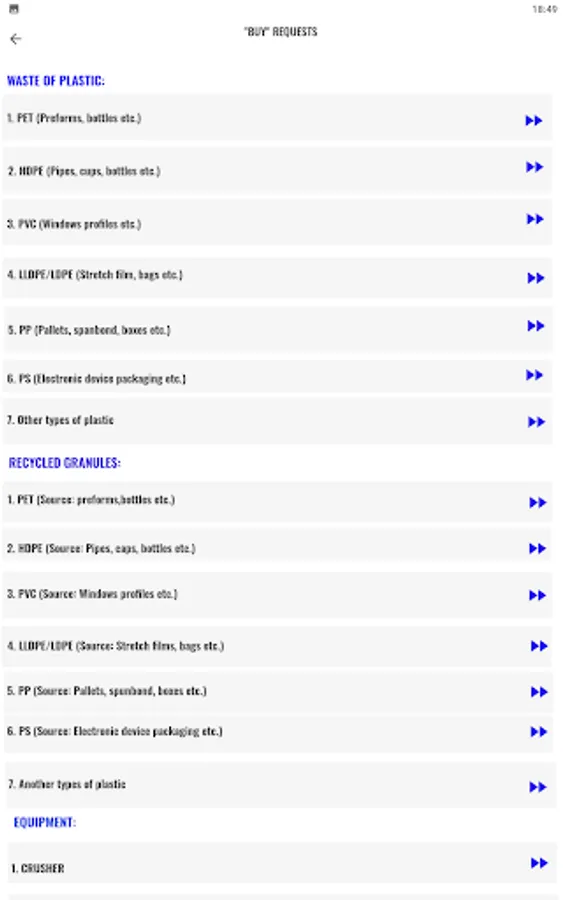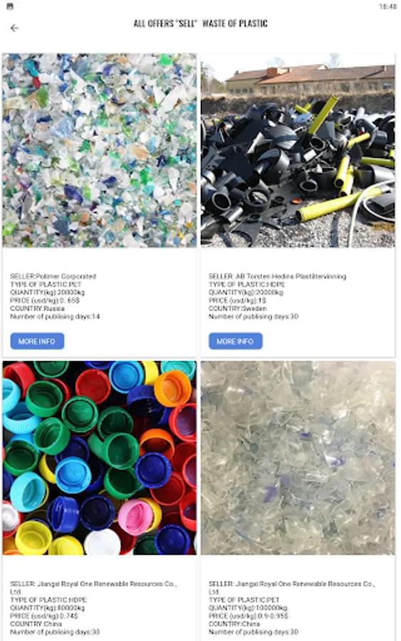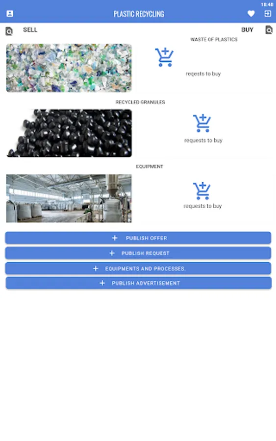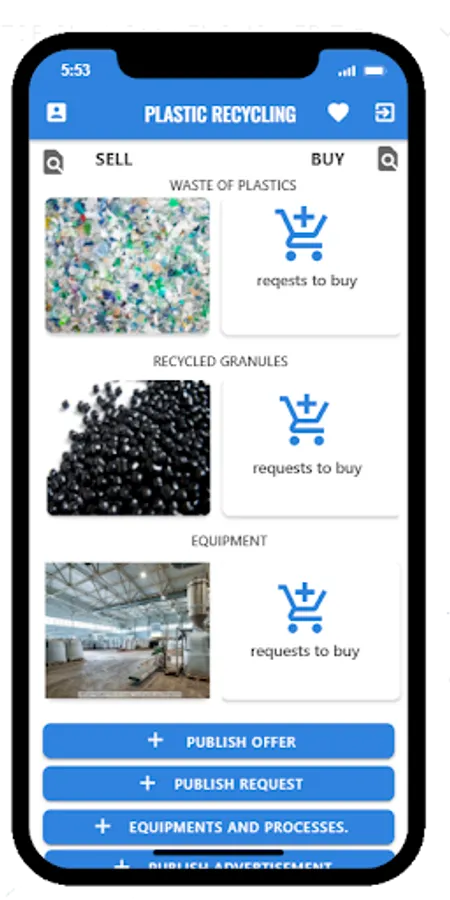 Plastic recycling is a mobile application for B2B recycling market participants, which will allow you to get the best offer for the purchase/sale of recycled polymers and waste, as well as equipment.
