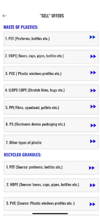Plastic recycling App is a smart and convenient mobile solution for the global recycled plastic market, where manufacturers, traders, waste collectors can exchange information how to quickly buy and sell waste (scrap), regranulate of recycled plastics (HDPE, LDPE, LLDPE, PP, PVC, UPVC, CPVC, PET, POLYESTER , PPCP, PC, PE, PS, ABS, ACRYLIC, EVA, NYLON, EVOH, HMW, UHMW, etc.) and recycling equipment.