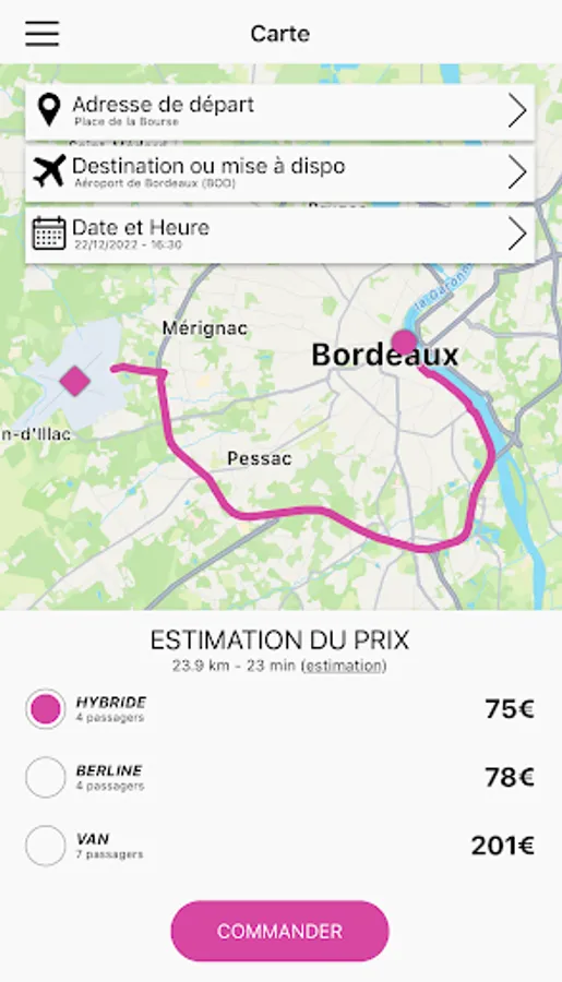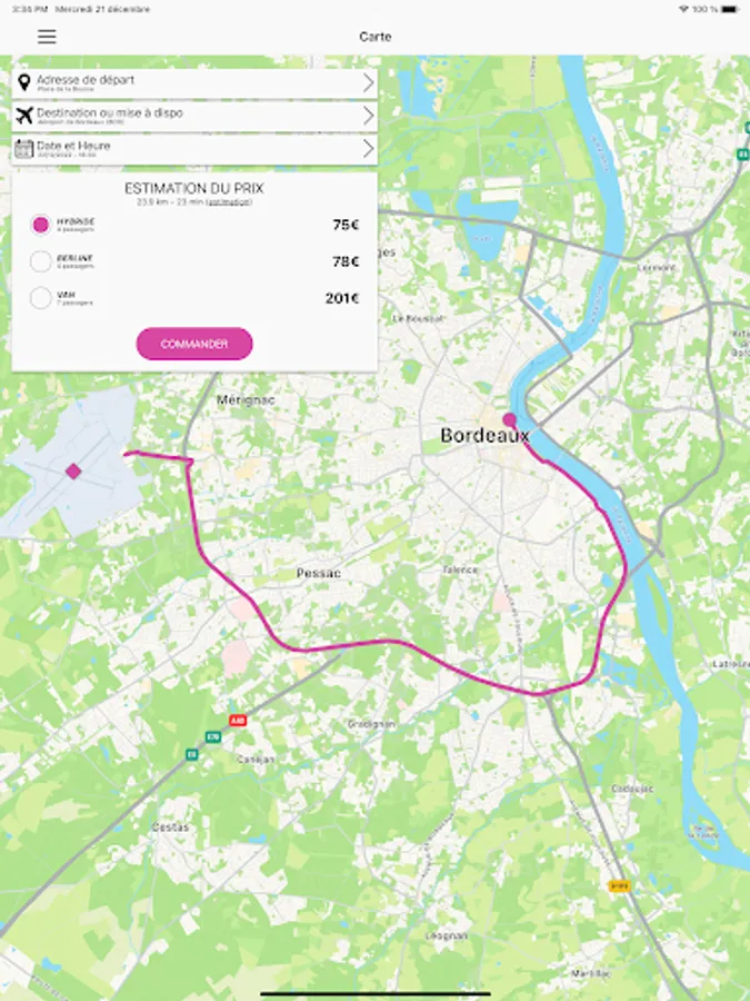 Finally, our application offers you a service of provision throughout the Gironde region. We hope you enjoy your trip with our Taxi / VTC service and transport organization application in the Gironde region.