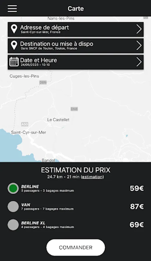 Easily book your Private VTC Driver in Saint-Cyr-sur-Mer, La Cadière-d'Azur and Le Castellet.