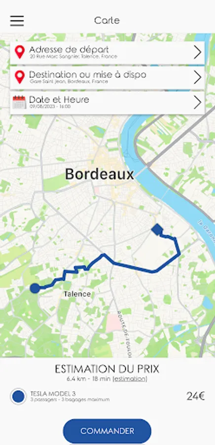 Electric Concept Car offers advance or instant reservations for all types of travel (station/airport/health establishments/resort) as well as long-distance races throughout the new Aquitaine region.