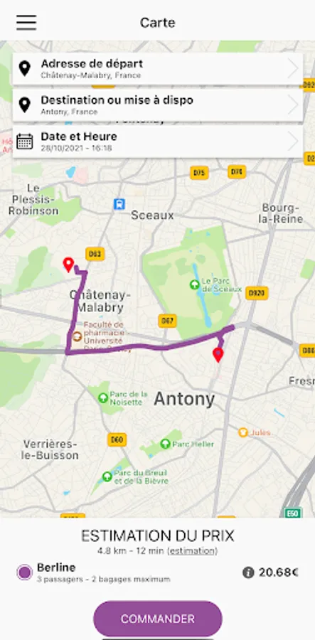 • Enter your departure and arrival points, choose your vehicle type and estimate the price of your trip.