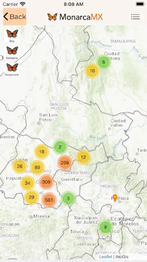 Monarch Butterfly citizen monitoring platform, which aims to know the migration route and the status of individuals in their transit through Mexico, initiative of the State Government of Guanajuato and World Wildlife Fund.