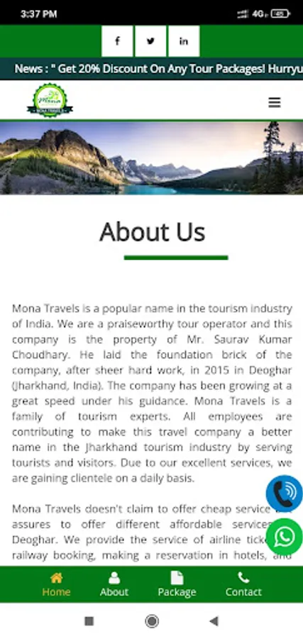 Mona Travels is a popular name in the tourism industry of India. We are a praiseworthy tour operator and this company is the property of Mr. Saurav Kumar Choudhary. He laid the foundation brick of the company, after sheer hard work, in 2015 in Deoghar (Jharkhand, India). The company has been growing at a great speed under his guidance. Mona Travels is a family of tourism experts. All employees are contributing to make this travel company a better name in the Jharkhand tourism industry by serving tourists and visitors. Due to our excellent services, we are gaining clientele on a daily basis.