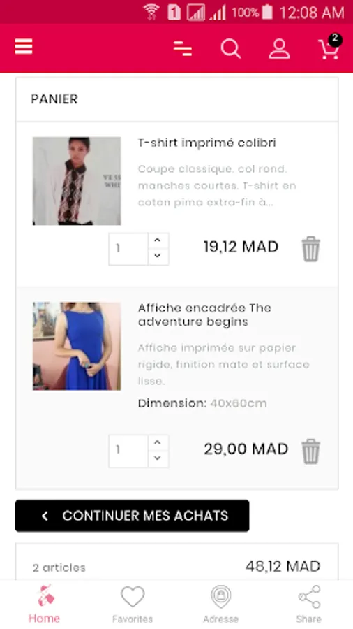Wiam Shop vous permet de recevoir des notifications aussitot qu'un nouvel article est rajouté au magasin principal et vous permet d'interagir avec vos produits préférés en les sauvegardant dans votre panier Wishlist et de les partager avec vos amies et votre entourage. Vous pouvez ensuite acheter vos articles préférés directement du magasin.