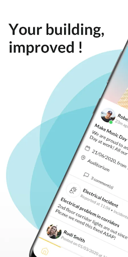 - Follow in real time what happens in your building through the building news and the incidents reporting