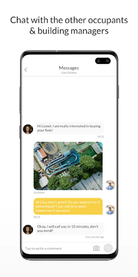 - Benefit from services to simplify your everyday life: concierge services, reservation of common spaces and goods, package delivery and all the other integrated apps.