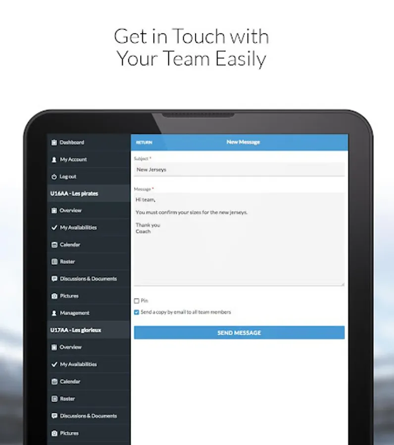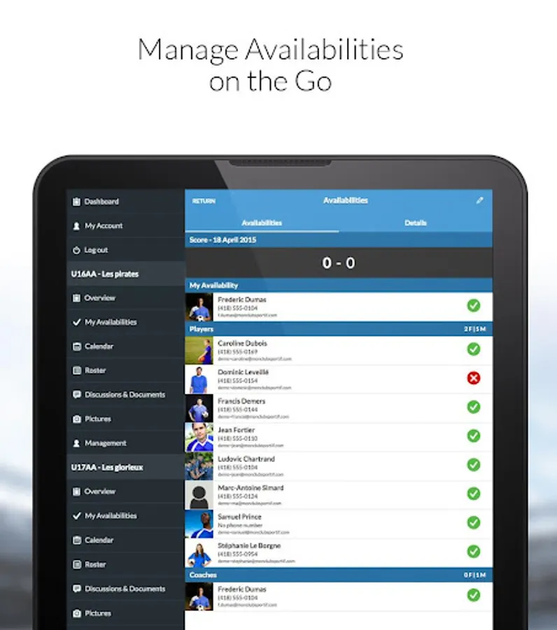MonClubSportif is a web app to help you manage your sport team easily from anywhere, anytime. You can manage it from you mobile phone, tablet or your desktop.