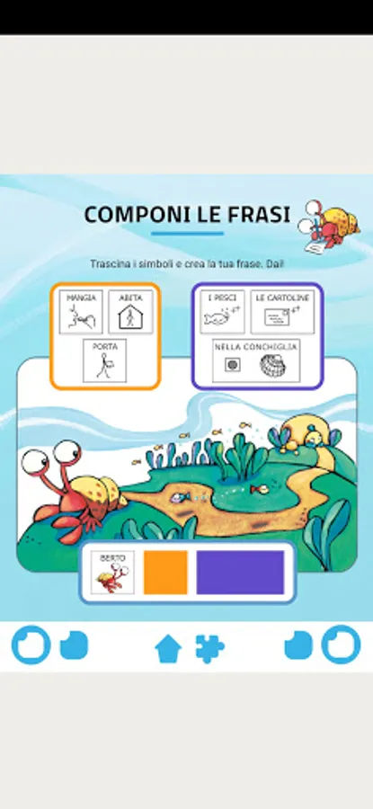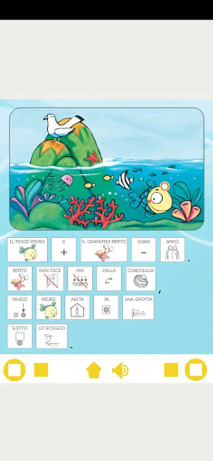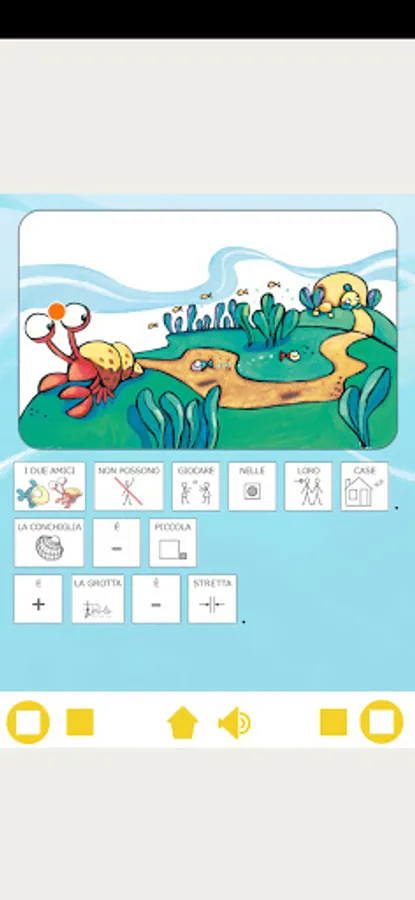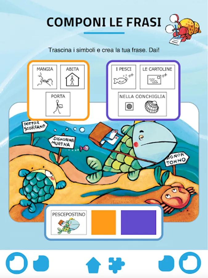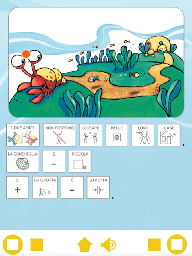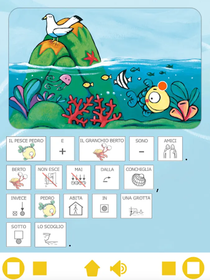 To involve children in the story, the author Guido Quarzo rewrote the original text of Amici nel mare, adapting it to the symbols of AAC, simplifying the narrative structure to meet the needs of each child.