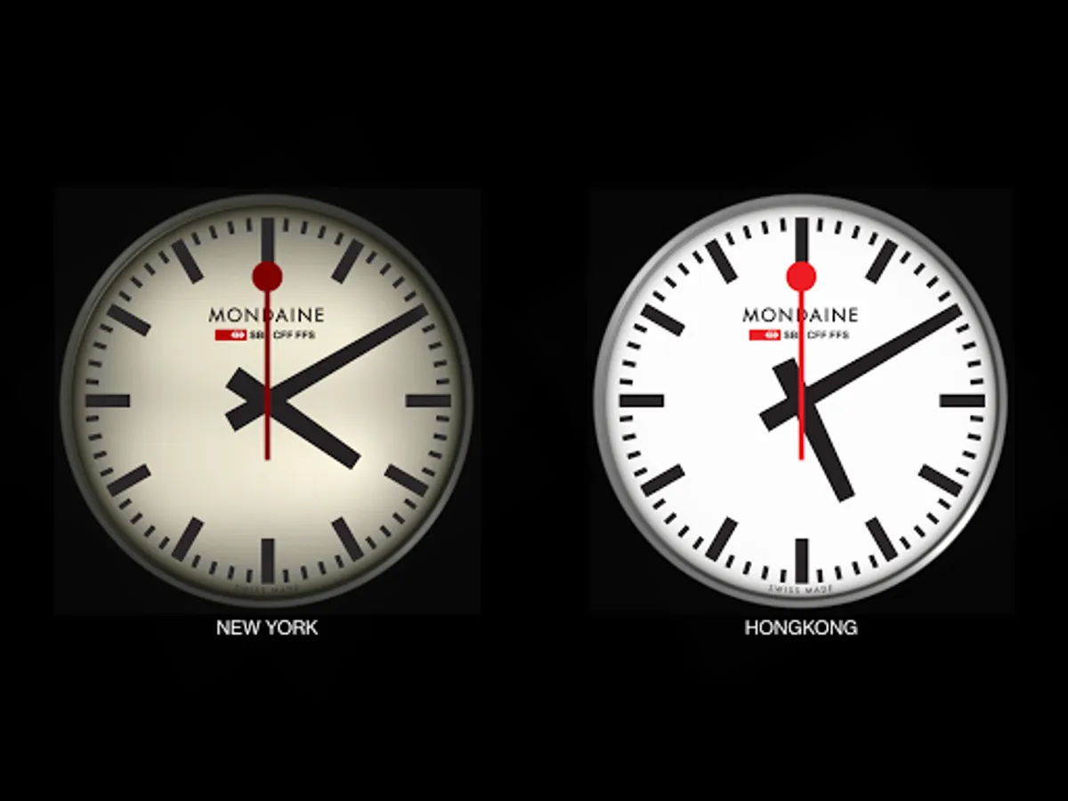 World timer with two clocks - turn your phone landscape and tap the label to set your desired time zones. Fine-tuned seconds, minute and hour hand display and animation.