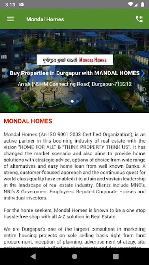 Mondal Homes (An ISO 9001:2008 Certified Organization), is an active partner in this booming industry of real estate with the vision “HOME FOR ALL” & “THINK PROPERTY THINK US”. It has changed the market scenario and also aims to provide home solutions with strategic advice, options of choice from wide range of alternatives and easy home loan from well known Banks. A strong, customer-focused approach and the continuous quest for world-class quality have enabled it to attain and sustain leadership in the landscape of real estate industry. Clients include MNC’s, NRI’s & Government Employees, Reputed Corporate Houses and individual investors.