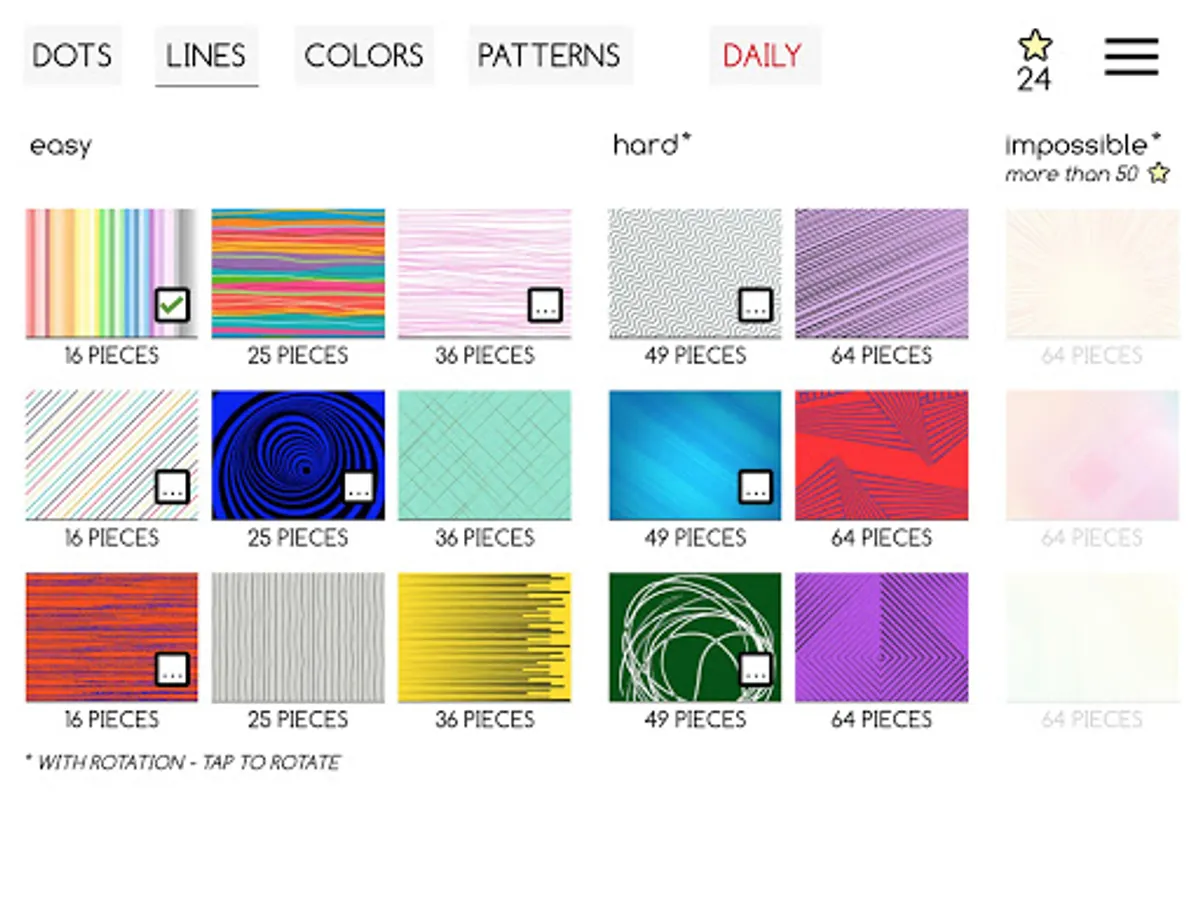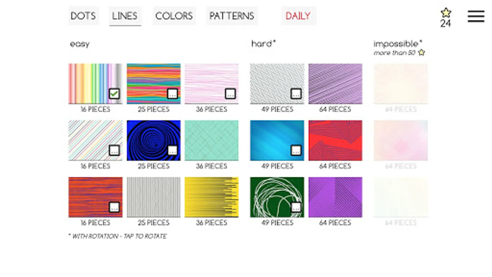 * More than 70 abstract picture jigsaw Puzzles in various themes: dots, lines, colors, patterns