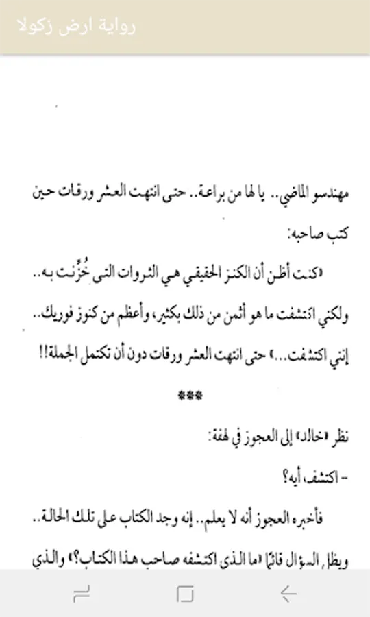 The novel of the land of Zikula is simple and enjoyable, its style is easy and fun, and its imagination is fertile. The metal of the story is wonderful and interesting .. I advise you to read it. In short, the story's events are wonderful and well described. The reader does not get tired, the details take you to another world, but the end is frustrating !! ... Aseel's sacrifice turned the story on in Arabic.