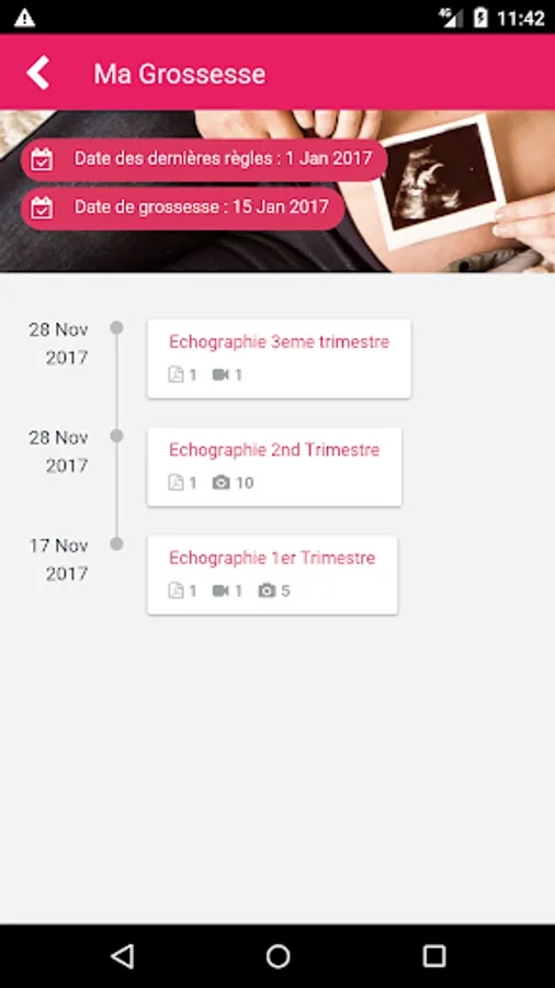 Find all the ultrasound images provided by your doctor or midwife. MediFile integrates directly a connector to the professional software of your practitioner iMonecho.com.