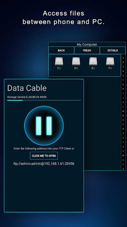 - Transfer screen and camera of PC to phone in real time and vice verse