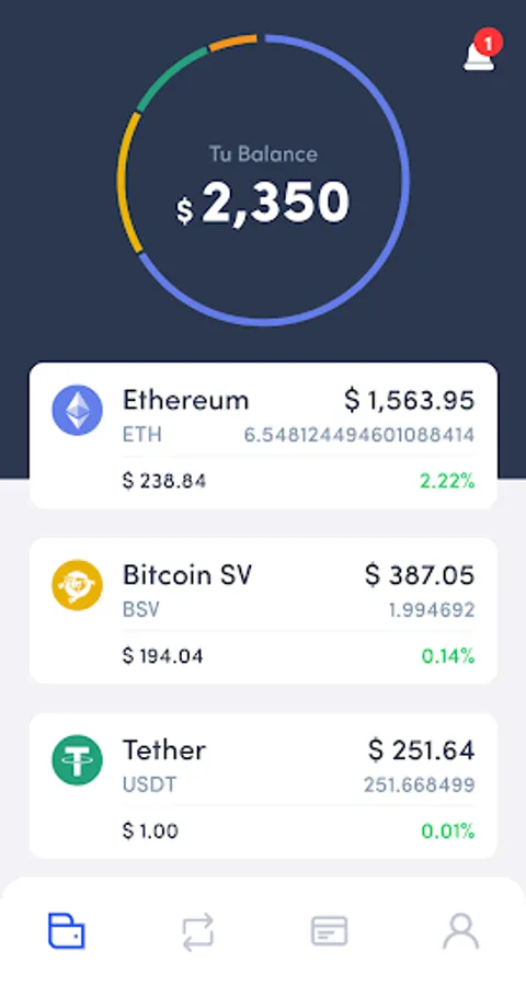 With this free Wallet you can use Bitcoin (BTC), Ethereum (ETH), Dash (Dash), Bitcoin Cash (BCH), Litecoin (LTC), Tether (USDT) and other cryptocurrencies in the most comfortable and secure way. Regardless if you are an expert or if you have never used cryptocurrencies, with this wallet you can make transactions, exchange between the different cryptocurrencies that it supports or buy BTC and Buy ETH with your local currency.