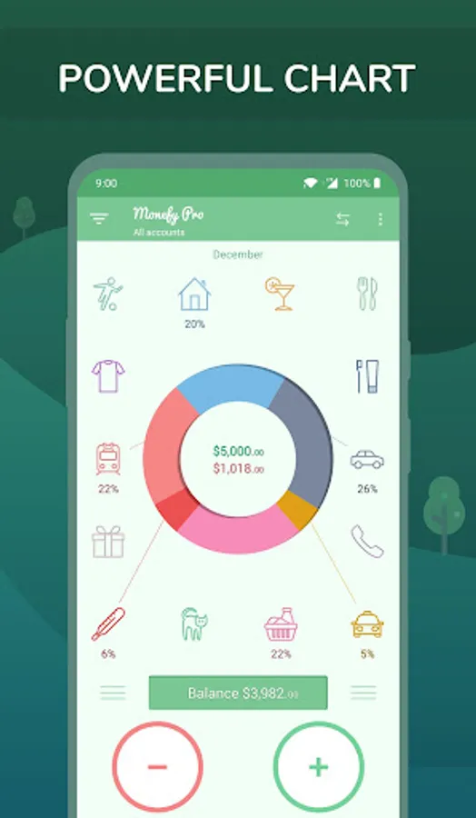 - See your spending distribution on an easy-to-read chart, or get detailed information from the records list