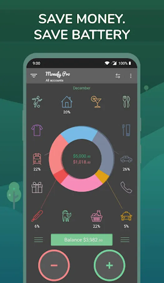Let's face it — saving money in today's world is not easy. You need a budget. Luckily, Monefy is more than a money tracker, it's also one of the best savings apps to help you with money management. Keep track of your personal expenses and compare them to your monthly income with the budget planner. Keep your monthly budget in mint condition. Your new budgeting app will help you become a budgeting master and start saving money with Monefy.