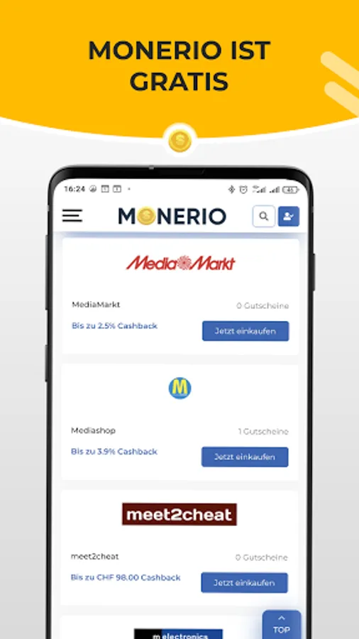 Mit der Monerio App entgeht dir kein Cashback! Kaufe online über dein Handy oder Tablet in einem unserer über 400 Partner-Shops ein und erhalte von uns für jeden Einkauf Geld zurück.