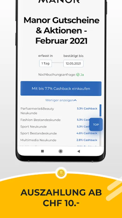 A propos Auszahlung: Diese ist bereits ab einem bestätigten Cashback in Höhe von 10 Franken möglich.