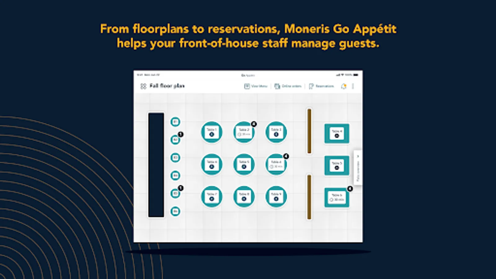 • Do it all: From floorplans to reservations and waitlists, to employees and beyond, the Moneris Go Restaurant app helps you track and manage multiple operations.