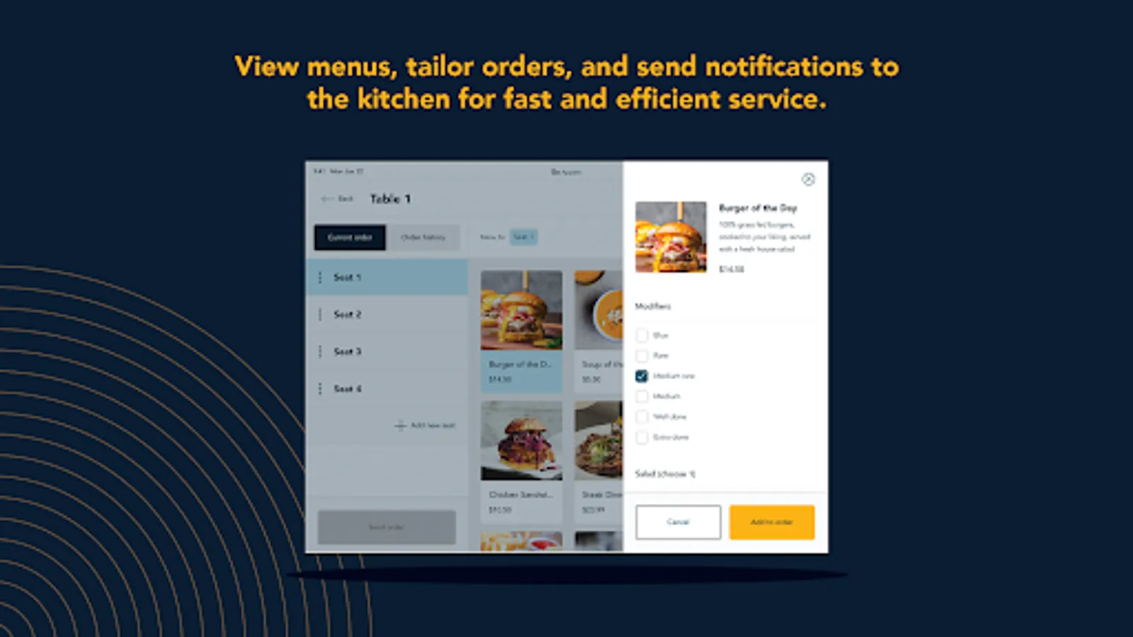 • Zero-fuss ordering: Split bills, give discounts, add last-minute items, and customize easily, for a seamless guest experience.