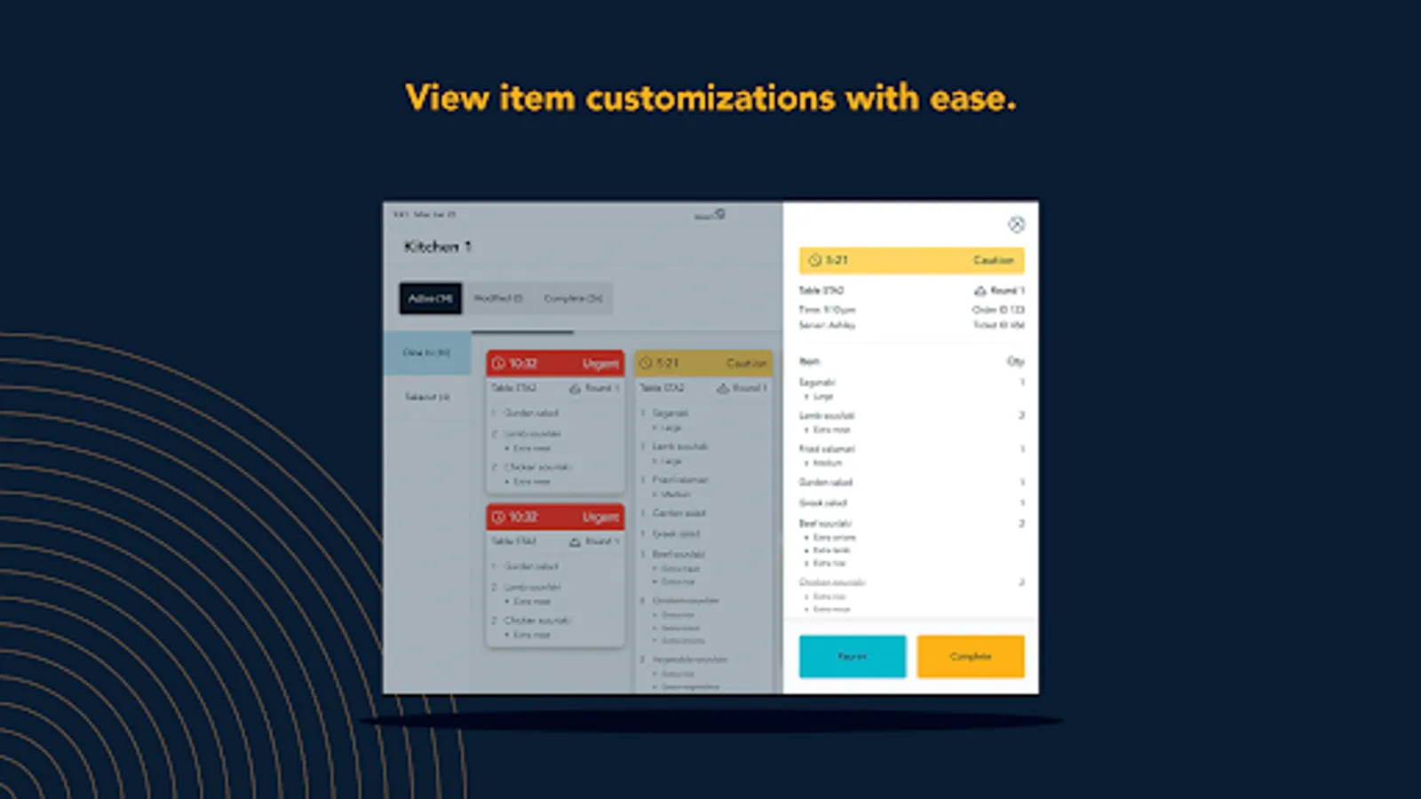 • Keep it all in check: Kitchen is notified of customizations and modifications, even after the ticket has already been submitted.