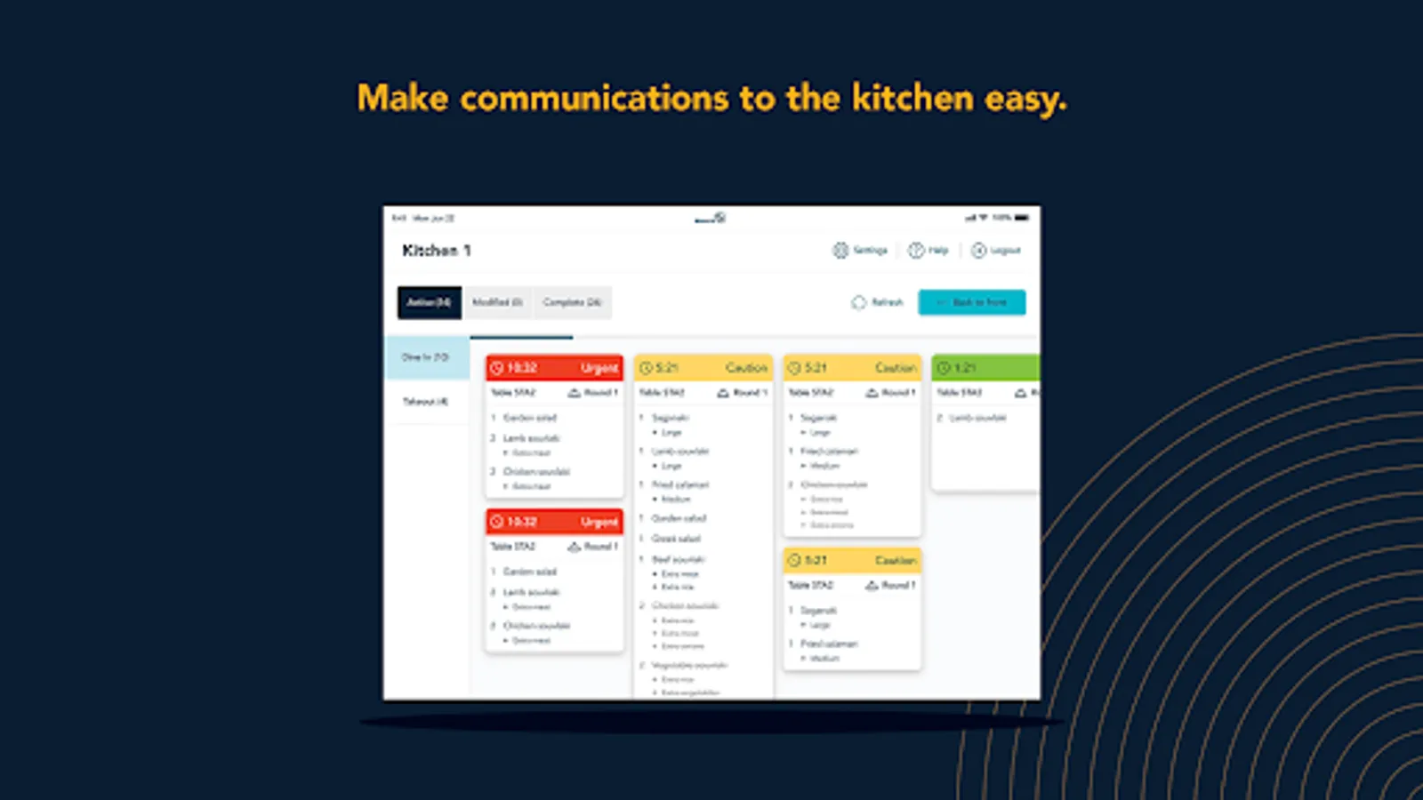 • Fast and easy ticketing: Order tickets are detailed, time elapsed with visual cues, and are colour coded for efficiency.